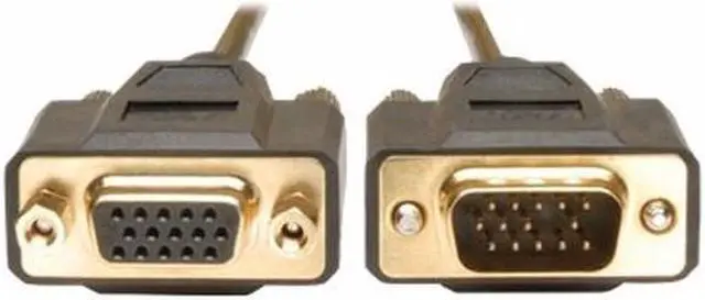 Tripp Lite 6ft VGA Monitor Extension Gold Cable Shielded HD15 M/F 6' - VGA extension cable - HD-15 (M) to HD-15 (F) - 6 ft - moldedTripp Lite's 6-foot SVGA/VGA monitor extension cable is the gold standard in video cables. The mini-coax (RGB) and paired video wire construction delivers superior signal quality. Gold plated connectors and gold plated copper contacts ensure excellent conductivity. Double shielding (foil and braid) provides maximum EMI/RFI protection. Both the high-density DB15 male and high-density DB15 female connectors are molded and have integral strain relief to ensure they last a long time.