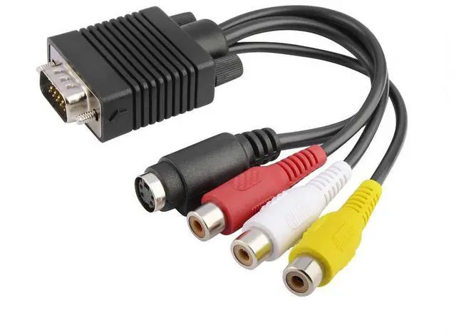 Features: Brand new and high quality. Standard Sub-D VGA Input. It will work with laptops and desktops with VGA cards that has TV-Out function capability through the VGA connector. VGA connector on one end and both RCA jack Video (TV) out and S-Video out connectors on the other end.