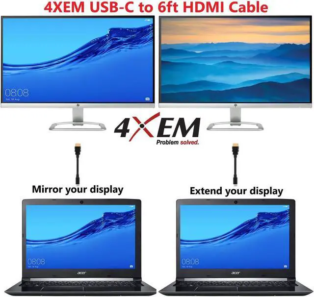 4XEM's USB-C to HDMI cable - black 6ft, USB Type C (Thunderbold 3 Compatible) to HDMI Converter for MacBook Pro, Dell XPS 13/15, HP Spectre x360, Lenovo Yoga 910 & More,