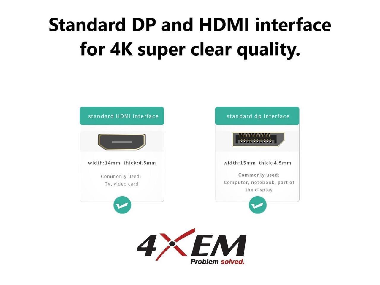4XEM 4K Displayport to HDMI Cable 3ft 4XDPHDMI3FT4K