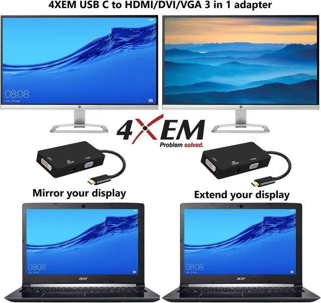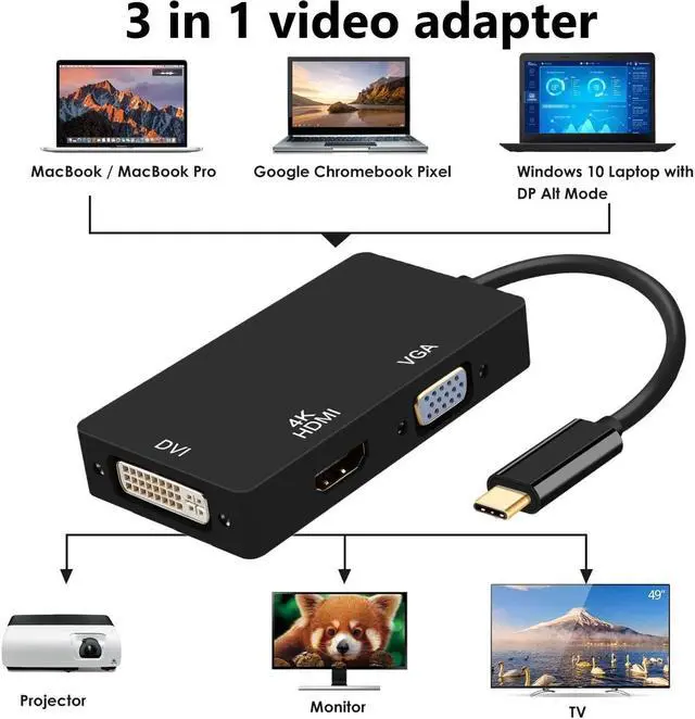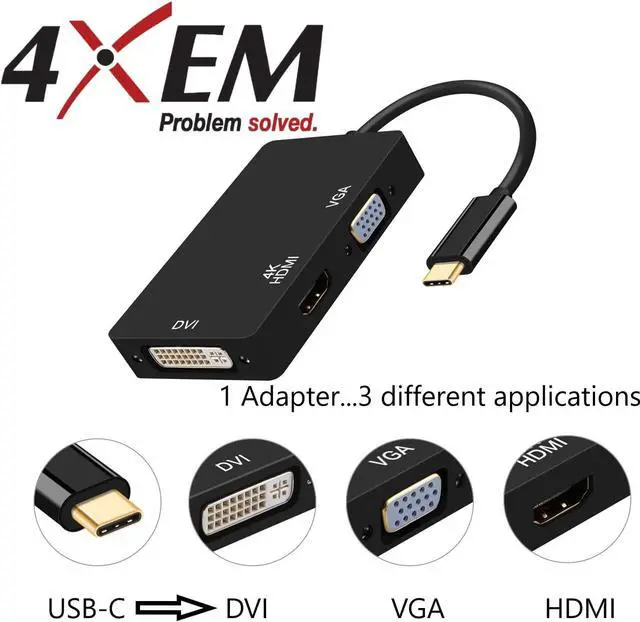4Xem 3 In 1 Usb Type C Hub To Hdmi Dvi Vga Adapter