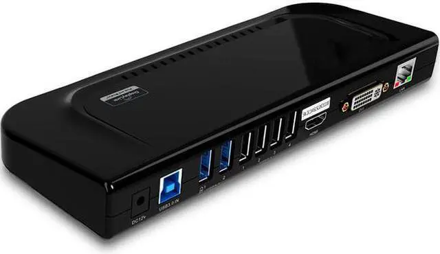 Streamline your workspace with our USB 3.0 Slim Universal Docking Station. This sleek and compact device is packed with features, including built-in audio (Mic in and Line out), DVI-I, HDMI, VGA, built-in USB3.0 Gigabit Ethernet Adapter, 2 x USB3.0 ports, and 4 x USB2.0 ports. Connect all your devices and peripherals in one place, and easily switch between your laptop and desktop, while still having access to all your peripherals. The built-in USB3.0 Gigabit Ethernet Adapter ensures stable internet connection, while the audio ports provide enhanced audio quality. The slim and compact design makes it easy to take on the go, making it perfect for on-the-go professionals and travelers. Optimize your workflow and elevate your travel experience with our USB 3.0 Slim Universal Docking Station - the ultimate in portability and connectivity.