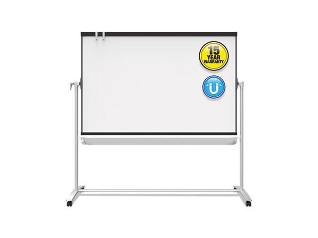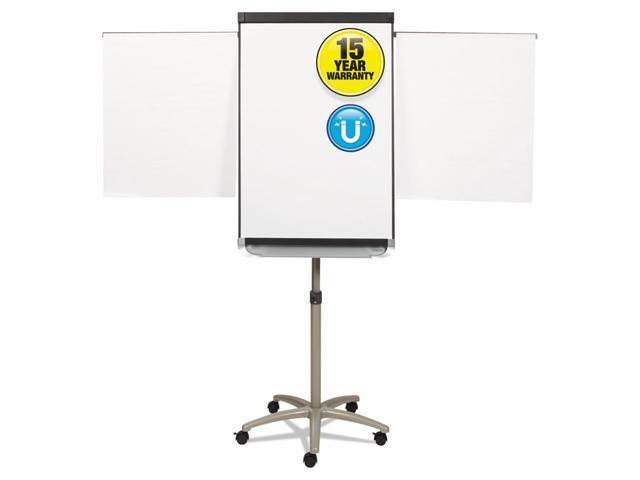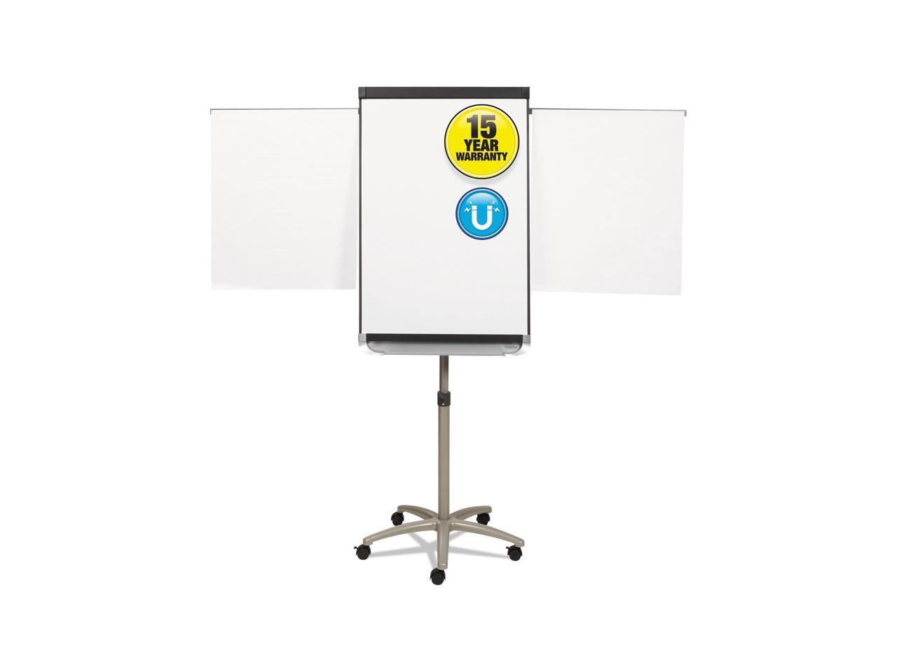 - Mobile presentation easel offers triple functionality: magnetic whiteboard, magnetic bulletin board and flipchart stand