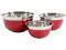 • The Oster Rosamond 3-Piece mixing bowl set provides a size for virtually every kitchen need. The stainless steel finish is both attractive and long-lasting. The sizes are 5 qt, 3.5 qt and 1.5 qt . - metallic red finish - the bowls nest for easy storage - dishwasher safe