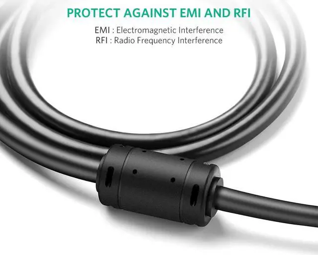 Integrated Ferrite Core: the svga cable equipped with ferrite core that could minimize crosstalk, avoid electrical radiation interference and protect against electromagnetic interference (EMI) and radio frequency interference (RFI;