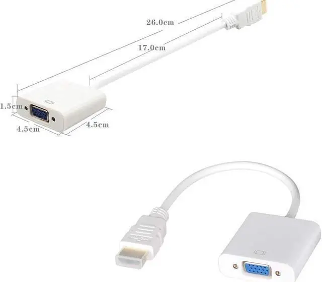 • The HDMI to VGA adapter provides a cost-effective and easy solution for connecting a desktop, laptop, or other devices with HDMI port to a VGA display such as monitor, projector or TV. Connect the HDMI male end of the converter to the HDMI port of your HDMI device, and connect the VGA female end to your VGA cable from the display.