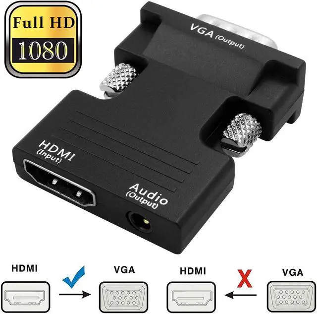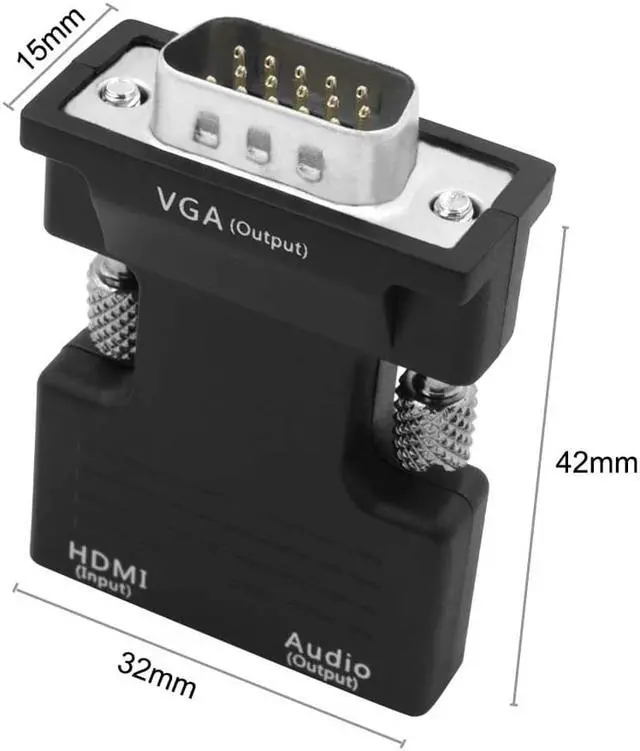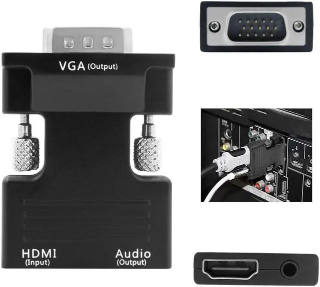 Simply connect the HDMI female end of the adapter into an HDMI connector of notebook or desktop PC by extra HDMI cable and the female end of the adapter to your VGA cable from the display. It converts HDMI digital signal to VGA analog signal and supports full-size high-definition resolution of 720p or 1080p.