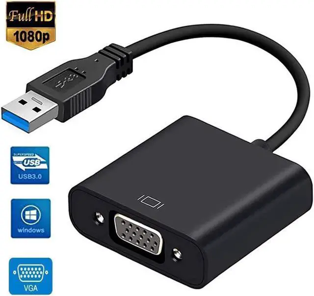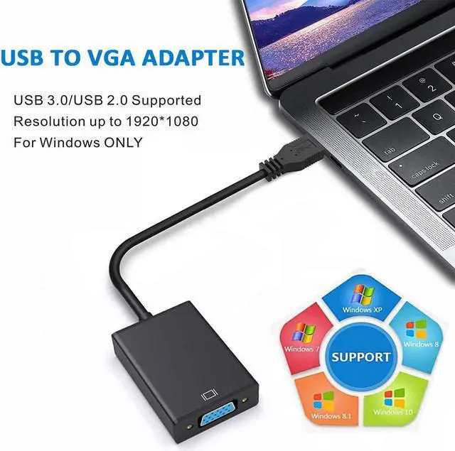 This USB 3.0 to VGA Adapter is used to connected a USB-enabled devices( such as laptop, desktop) with a VGA-enabled devices( such as monitor, projector, TV) for multi-monitor solution, extending working space with split-screen, mirroring display, etc