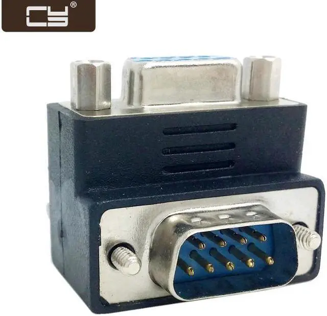Down Right Angled 270 degree RS232 D-Sub 9Pin Male screw type To Female Nut type extension Adapter RS232 DB 9pin male with thumberscrews. RS232 DB 9pin male with screw nuts. Color: Balck Down Right Angled 270 degree extension adapter