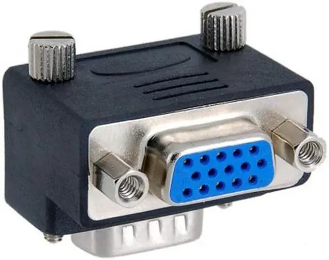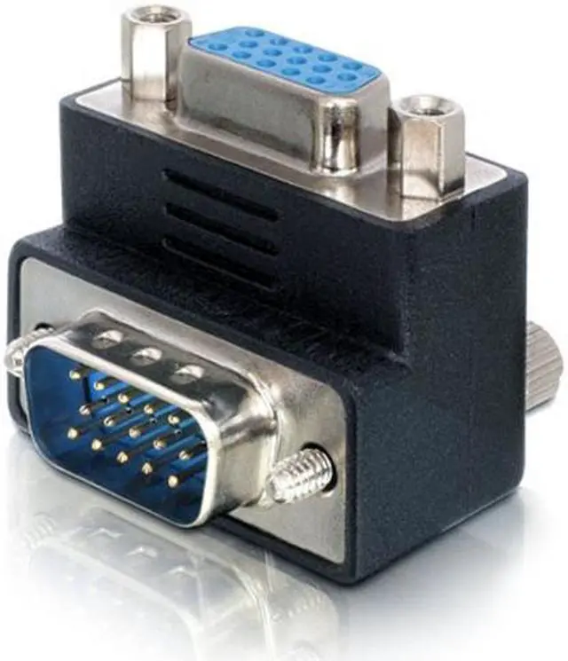 A right-angled 15 pin high density VGA plug to socket adaptor