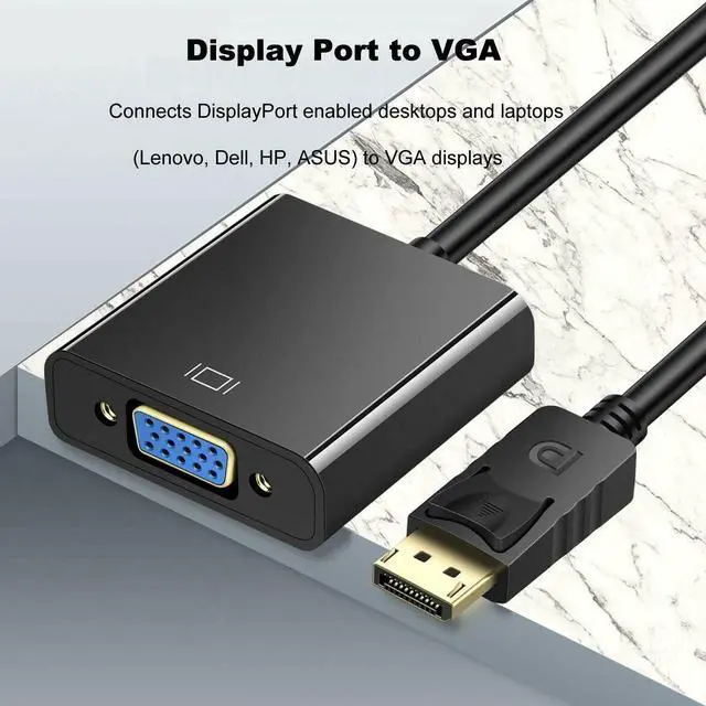 Connects DisplayPort equipped laptops or desktops to monitors or projectors with VGA input