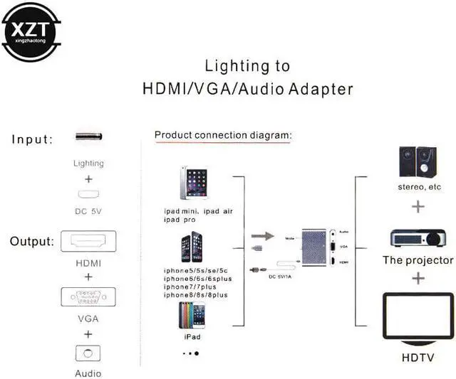 1.Converter for Lightning to / VGA/AV adapter