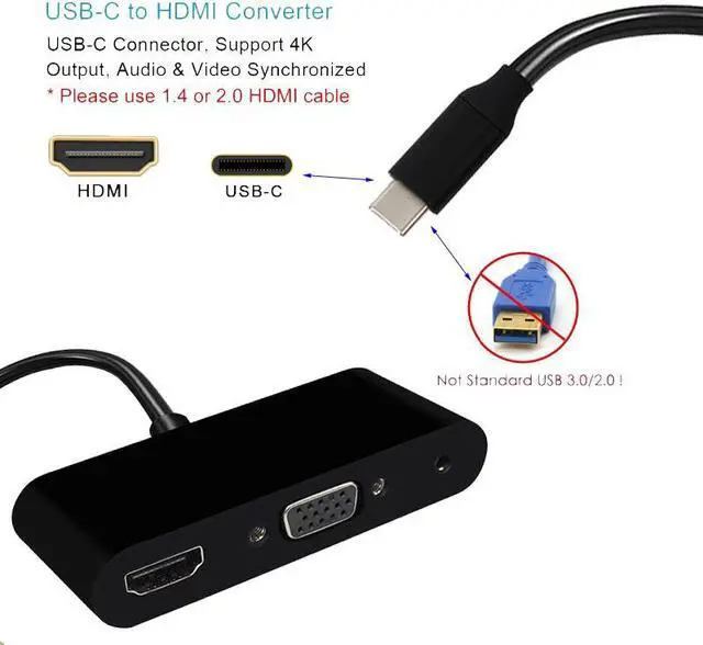 Portable digital video adapter, you can connect to your HDTV, monitor, computer, tablet, projector and other / display to your USB / Type C devices with / VGA connector; Supports resolutions up to 4K Ultra HD UHD 4Kx2K @ 30Hz (3840 x 2160), including 720p, 1080p, and 1600 x 1200 For monitors or projectors