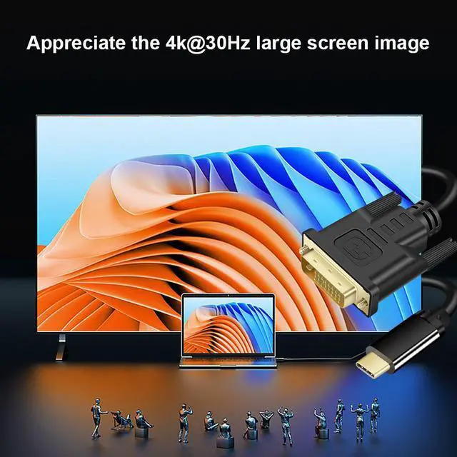 USB-C to DVI Cable provides a cost-effective and easy solution for connecting a desktop, laptop, or other devices with USB-C port to a DVI-D display such as monitor, projector or TV. Connect the USB-C male end to your laptop or computer's USB Type-C slot, and connect the DVI-D male end to your DVI-D display. Resolution Support video resolution up to 4K@30Hz, 1920 x 1080 @ 60Hz (1080p Full HD), including 720p and 1600x1200
