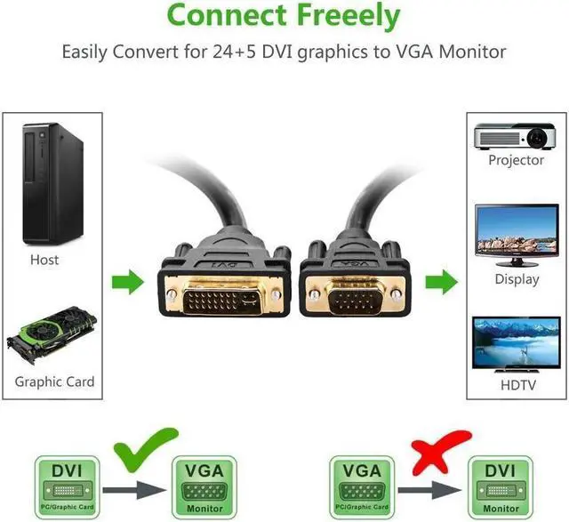 6. Made of Oxygen Free Copper, OD: 7.3 mm; Package Contents 2m DVI 24+5 DVI-I Dual Link to VGA Male to Male Digital Video Cable