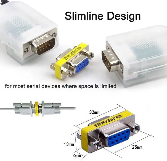 RS232 male to male adapter with small body is convenient for carrying and storing in your RS-232 toolkit, also the perfect PC accessories connectors for most serial devices where space is limited.