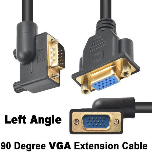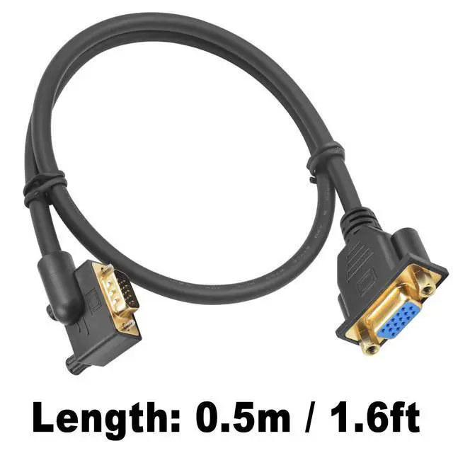Vszerda VGA Extension Cable 1.5ft, 90 Degree Left Angle VGA 15 Pin Male to Female Extender Cable, HD15 Monitor Video Cable Support 1080P Full HD for PC Laptop TV Projector