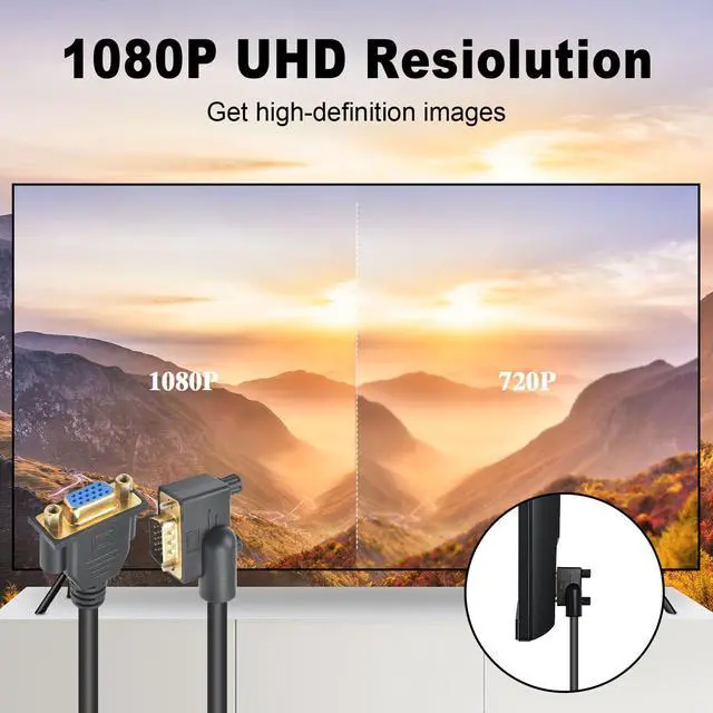 • [90 Degree VGA Adapter Cable]with L Shape of Left Angle VGA Connector can saves space for you to fit it the tight place behind the TV or VGA monitor,and also has humb screws on the existing VGA cable to provide a secure connection.