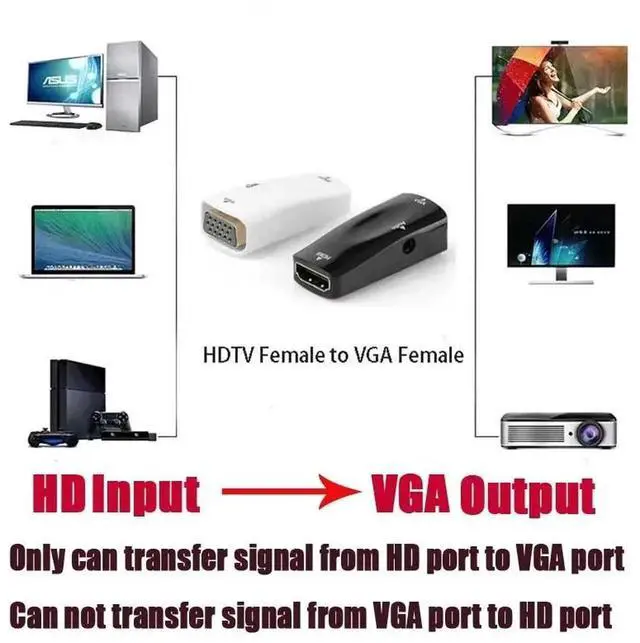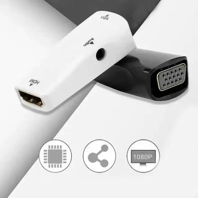 With HDMI to VGA Converter Female to Female Adapter Computer Laptop Game Player to HDTV Projector Monitor Audio 1080P Video Plug