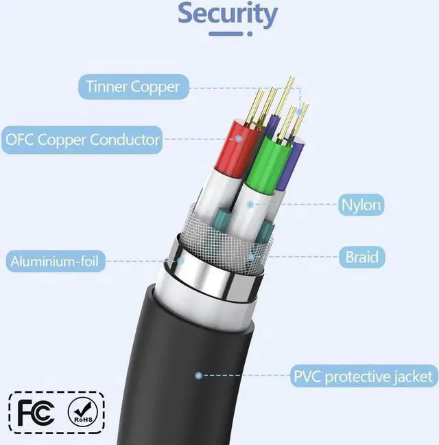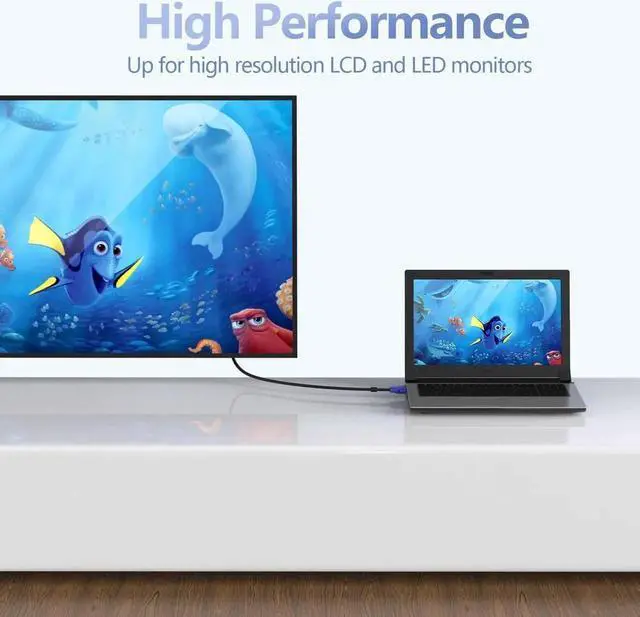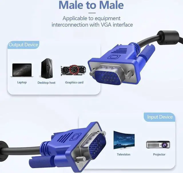 The VGA Cable is the ultimate link for connecting your desktop or laptop to a monitor or projector. The combination of gold-plated connectors, bare copper conductors, foil & braid shielding, and dual ferrite cores provides superior cable performance. Low impedance, signal distortion is small, 99.9 % reduction signal.