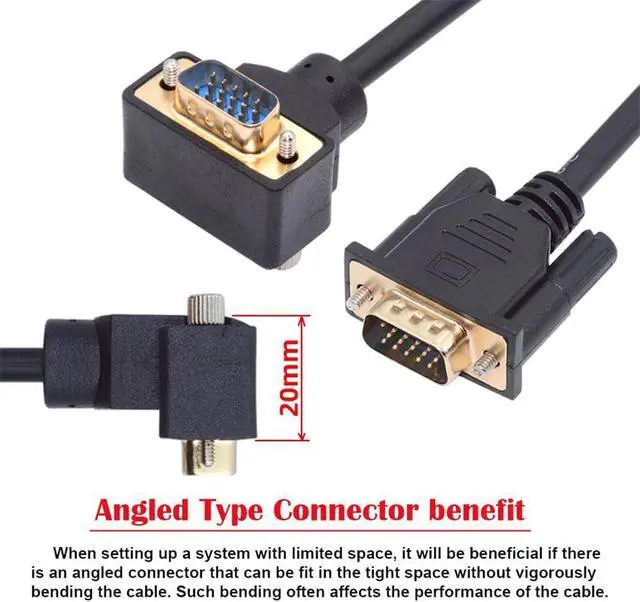 The angled type Allowing you to connect it to a female port, even if space around the port is limited.