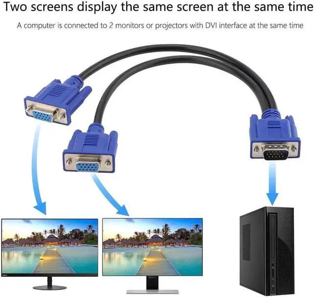 Easily connect two monitors to a single VGA source computer. Simply attach VGA cables (sold separately) from the monitors to the female ends of this cable adapter.