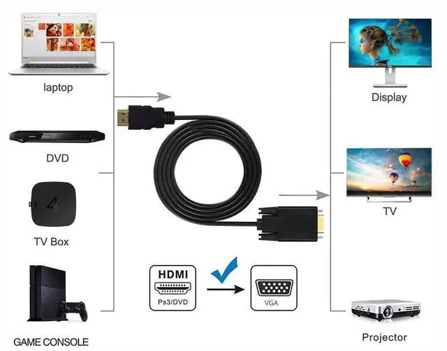 HDMI to VGA Cable Qaoquda 6ft/1.8m Gold-plated 1080P HDMI Male to VGA Male Video Audio Converter Adapter Cord Support Notebook PC DVD Player Laptop TV Projector Monitor Etc