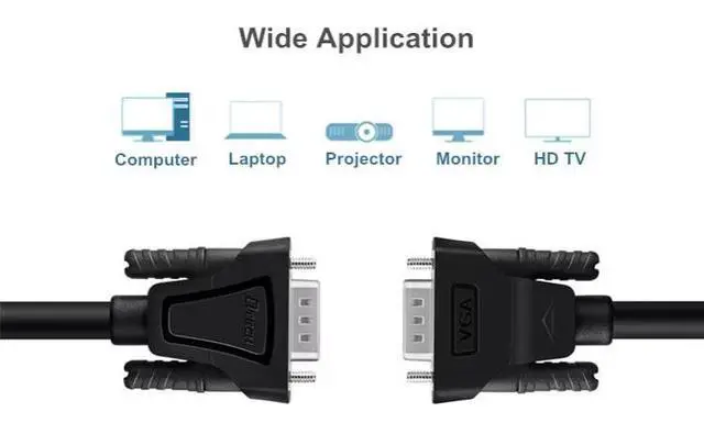 The DTECH VGA Cable offers a dependable solution for extending high-definition video signals up to 40 meters. Engineered with a 3+6 core copper construction and durable TPE jacket, it maintains stable 1080P video quality for presentations, home theaters, and digital signage. The standard VGA male connectors ensure broad compatibility with laptops, PCs, and display equipment, making it an ideal choice for both residential and commercial AV setups.