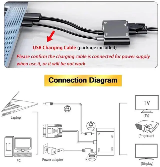 - [Durable and Portable]: Aluminum frosted shell, which has the advantages of anti-skid, wear-resistant, anti-scratch, etc. This VGA adapter is easy to carry on a business trip in your laptop bag. You can expand the computer screen to a large screen(Projector/Monitor) for presentation. It is super convenient for meetings and family entertainment.