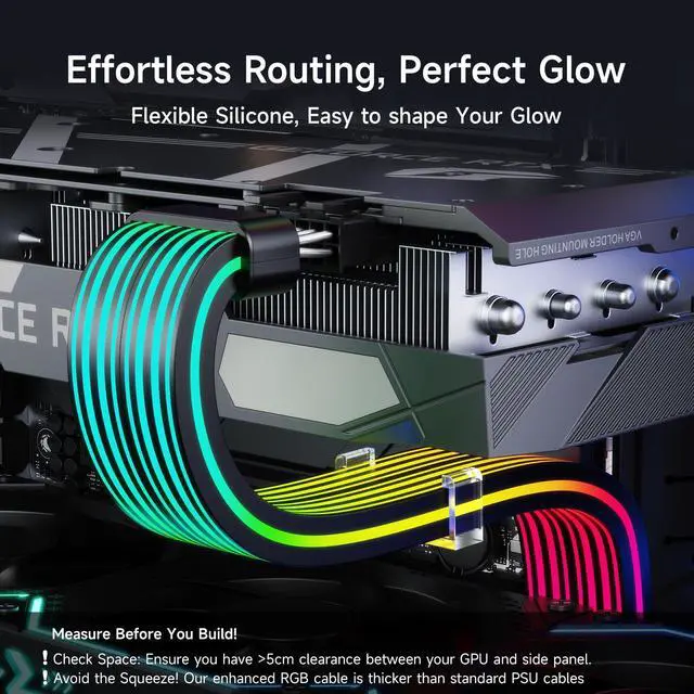 LIGHTED ON FOUR SIDESRGB cable extension PC make of 108 beads make the light strip soft and no dark spots,360-degree light effect let you case cooler and brighter.