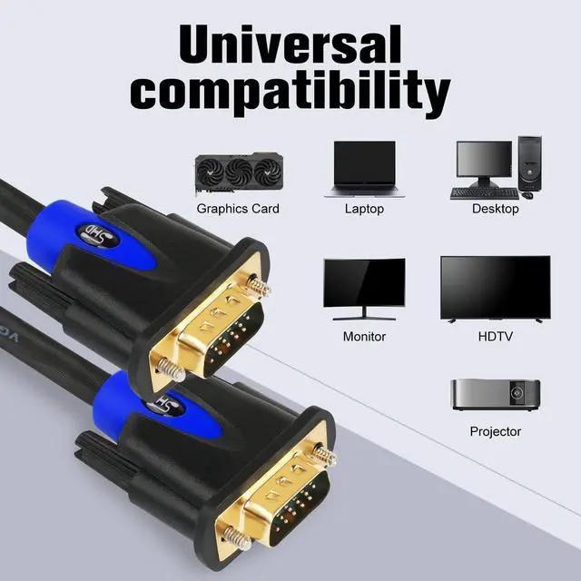 6 Feet 15 Pin VGA Male to VGA Male Cable, Easy to Installation and Easy to Use