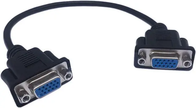 The VGA female to female cable extends the length of two VGA male cables. It can convert a male VGA connector into a female VGA port.
