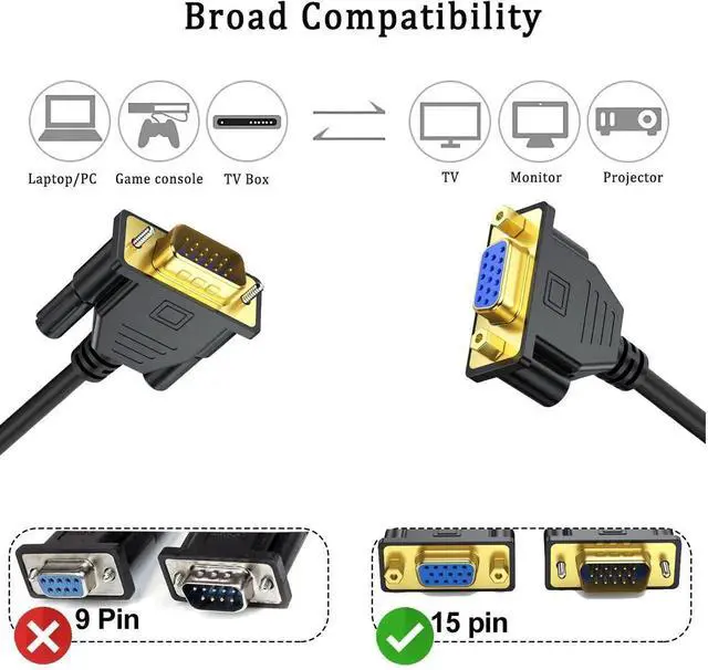 [Important Note]This is 15 pin VGA Extension cable, it is vga male to female cable, is not vga male to male cable 2. This is vga extender cable 15 pin, it does not support for 9 pin vga devices.
