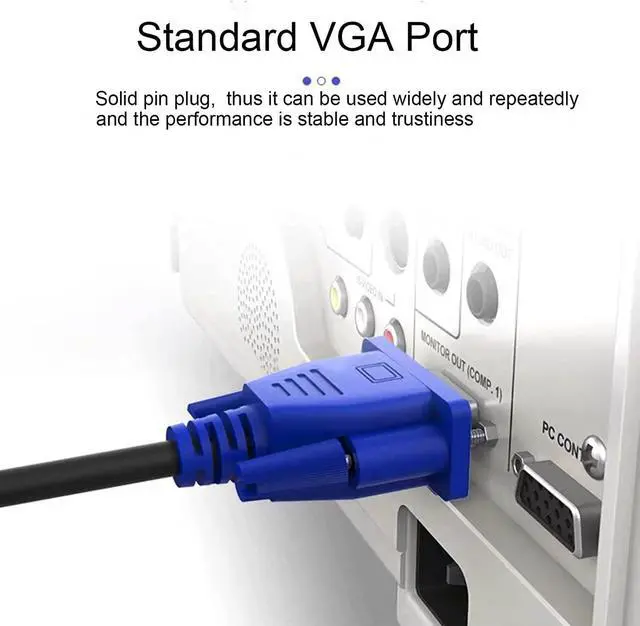 Full HD 1080P & Gold-PlatedSupports resolutions at 800x600 (SVGA) 1024x768 (XGA) 1600x1200 (UXGA) 1920x1080P 2560×1080 3440×1080 3840×1080 1440×1080 1280×1080 and up for high resolution LCD and LED monitors. making it ideal for connecting high-resolution monitors and projectors. With gold-plated connectors and bare copper conductors this VGA monitor cable guarantees exceptional RGB signal transmission producing vivid and crisp video outputProtect Against EMI & RFIFoil & braid shielding and 100% pure copper cores on the shielded VGA male to male PC cable minimize crosstalk suppress noise and protect against electromagnetic interference (EMI) and radio frequency interference (RFI) A Wide Range of Uses 6FT VGA cable used with Computer Laptop Monitors Projectors VGA Splitters KVM and more.