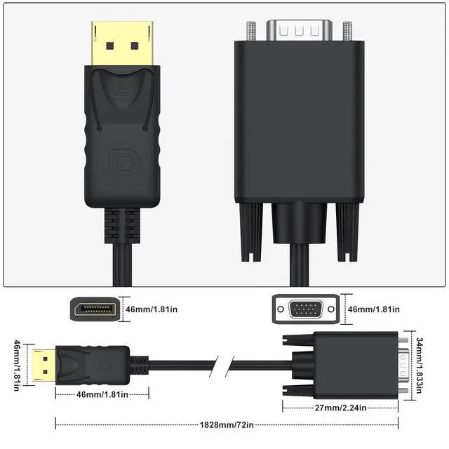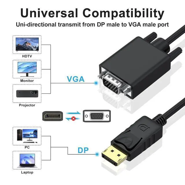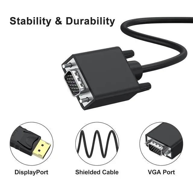 Compatibility: Works seamlessly with laptops desktops graphics cards and other devices with DisplayPort ports; ideal for connecting to VGA-enabled monitors projectors TVs in offices classrooms home theaters and more