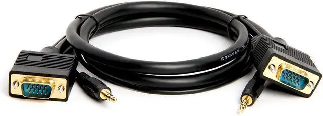 Premium VGA monitor cables with 3.5 mm audio connections are ideal for connecting computer to a monitor or projector with 15-pin VGA port (also known as RGB DB-15 DE-15 HD-15 HDB-15 or D-sub 15) for video editing gaming or video projection; Supports both video and audio with a single cableSupported resolutions: 800x600 (SVGA) 1024x768 (XGA) 1600x1200 (UXGA) 1080p (Full HD) 1920x1200 (WUXGA) and up. Supports 3.5 mm stereo audio pass-through for audio signal typically used to connect a computer sound to a LCD and LED monitors. Audio cable is 24 inch from VGA connectorThe combination of 24K Gold-Plated connectors and Bare Copper conductors provides this monitor cable with superior cable performance.