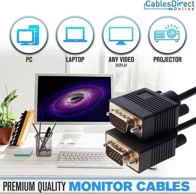 High-Quality Monitor Cable: Connects desktops or laptops to VGA or SVGA monitors ensuring crystal-clear video transmission for home or office setups. Great for projectors CCTV or any application with VGA compatibility.
