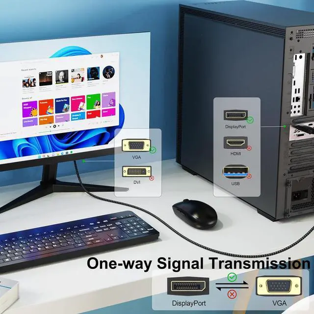 Note: vga port do not support audio outputDevice CompatibilityThe display to vga cable connect desktop pc laptop to monitor. Compatible for and other devices with DP portPlug & PlayJust plug and play no driver installation needed. Offering 2-year customer coverage.