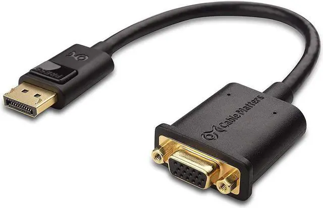 Portable VGA to DP adapter connects a DisplayPort (DP DP++ DisplayPort++) equipped laptop or desktop to a monitor or projector with VGA input; A VGA cable (sold separately) is required for this DP to VGA cable adapterDisplay Port to VGA adapter transmits high-definition video from your computer to a monitor for video streaming or gaming; VGA to DisplayPort cable adapter connects and configures your monitor for an Extended Desktop or Mirrored DisplaysDisplay to VGA adapter supports video resolutions up to 1080P (Full HD) DisplayPort to VGA cable adapter with Gold-plated connectors resists corrosion provides durability and improves the signal transmissionVGA to DisplayPort adapter connector with latches provides a secure connection with a release button that must be depressed before unplugging