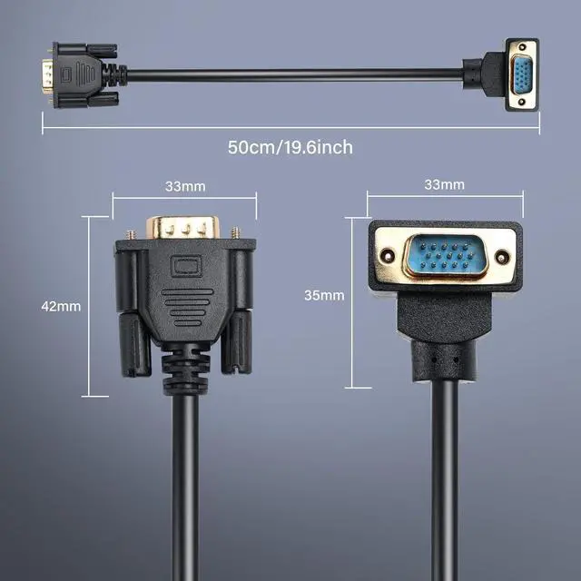 Right angle design: The 90 degree elbow is flexible and can be used in narrow spaces solving the problem of wall mounted televisions projectors all-in-one machines etc. It is specially designed for the narrow space on the back of the equipment and can be flexibly used for wiring constructionWidely used: Compatible with any device with VGA interface. Widely used in computers monitors projectors HDTVs and other devices