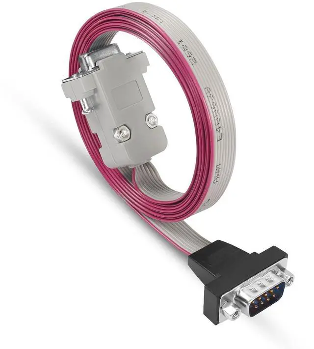 RS-232 serial cable com port adapter cable DB9 9 pin male plug to female panel mount internal cableFasten a DB9 (RS232) Serial port to any computer system which has an RS232 serial panel mount receptacleFlat ribbon cable saves space and time in circuit interconnect assembliesConnector