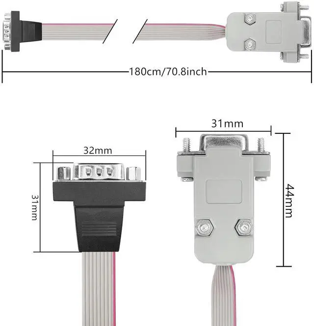 Package Contents: 2pcs x DB9 Flat Ribbon CableDB9 serial cable uses high-quality nickel-plated connectors and plugs and a high-quality PVC injection housingWith wear-resistant durable smooth transmission and other functionsUses: industrial control automatic control. Programming cable CNC machine tool PDA tax control machine barcode machine
