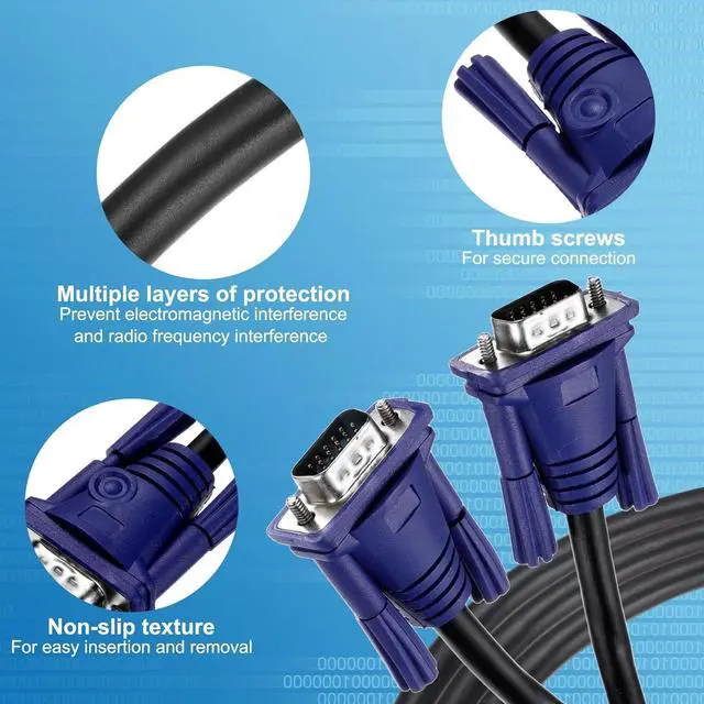 [WHEN/WHERE TO USE]: Supporting resolutions up to 1024 x 776 and higher vga monitor cable is suitable for video gaming or video projection; fit for most PCs laptops TVs monitors projectors and other display devices with VGA ports. VGA to VGA cable is great for use in offices classrooms home theaters or any scenario where video signals need to be extended to larger screens.