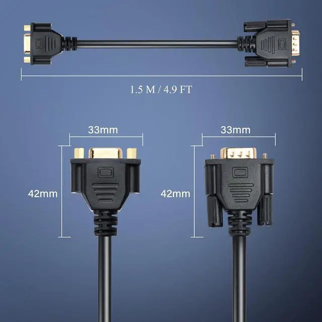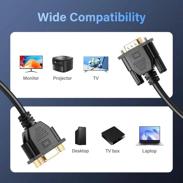 VGA Male-to-Female Extension Cable: Used to connect PCs and laptops equipped with VGA connectors to monitors projectors etc. with VGA ports.