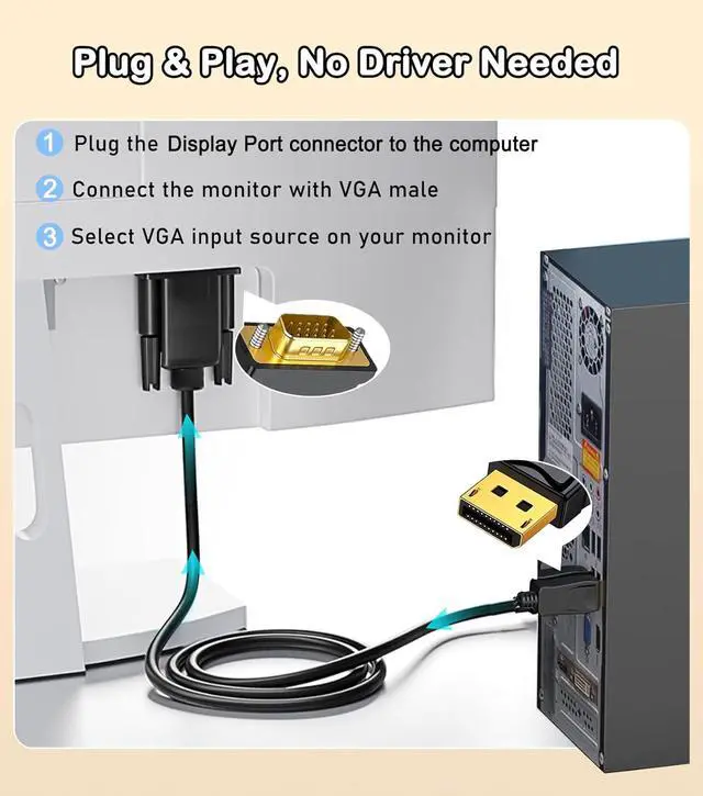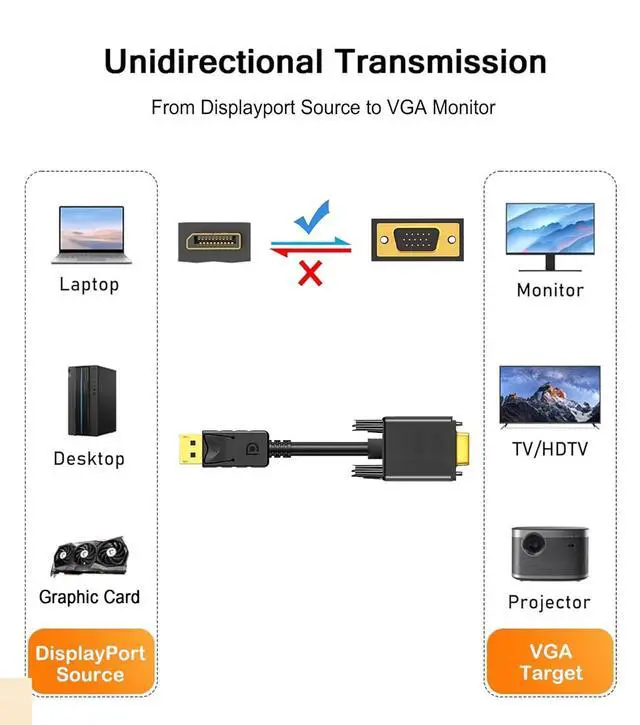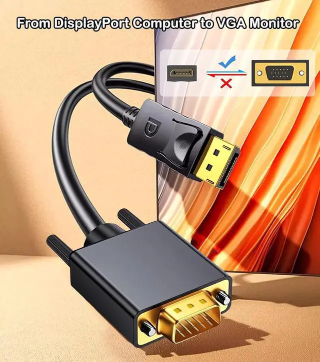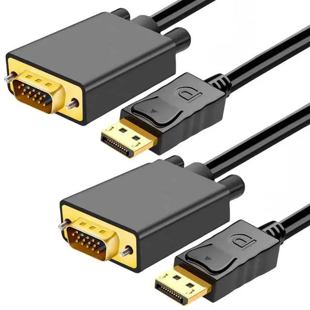 DisplayPort to VGA Cable 6FT/2 Pack Display Port DP to VGA Adapter 1080P@60Hz Video Cord from Laptop/Computer (DP) to Monitor/Projector (VGA) Not Bidirectional Not for HDMI or USB