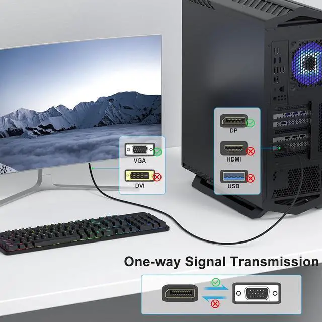 ? Wide CompatibilityWorks with DP-equipped laptops desktops and graphics cards connects to VGA monitors projectors or monitors supports extended and mirrored display modes. Ideal for office home and presentation settings.? 1080P@60Hz Full HDBuilt-in advanced IC chip ensures clear flicker-free video up to 1920x1080@60Hz perfect for work presentations games and movies providing clear images and smooth video for work or entertainment.? Plug and PlayNo drivers or external power required. Simply connect your DP and VGA devices for instant high-quality video and audio transmission.? Secure & Durable Reinforced latch design prevents accidental disconnection; gold-plated connectors and corrosion-resistant shielding pvc cable provide stable signal and long-lasting use.