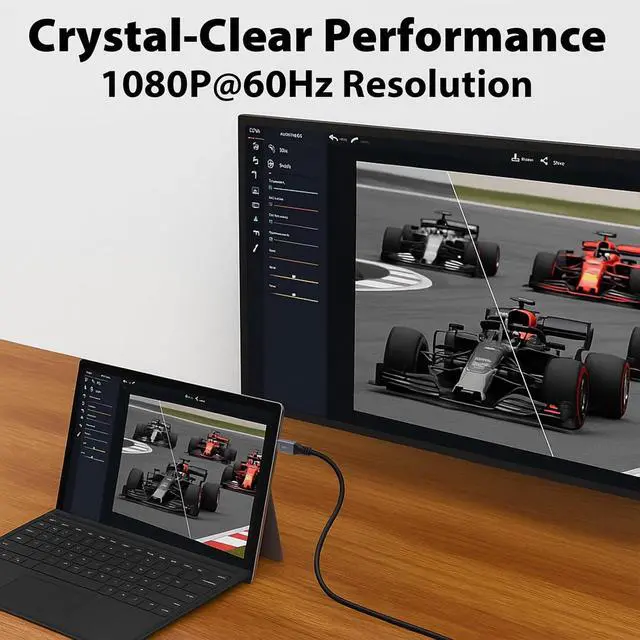 Mini DisplayPort to VGA Cable Connect laptops desktops or tablets with Mini DisplayPort/Thunderbolt 2 ports to projectors monitors or displays with VGA inputCrystal-Clear Mini Display Port to VGA Cable Performance Supports Full HD resolution up to 1920x1200 and 1080P @ 60Hz for sharp visuals during work study or gamingEasy-Use Thunderbolt to VGA Adapter Design Ideal for MacBook Surface Pro and other laptops providing stable and lag-free video outputPlug-and-Play Mini DisplayPort Cable Unidirectional conversion from Mini DP to VGA only with easy setup and no driver or software installation requiredSecure Latch with Gold-Plated Connectors Ensures a stable connection while resisting corrosion built with durable PVC for long-term use