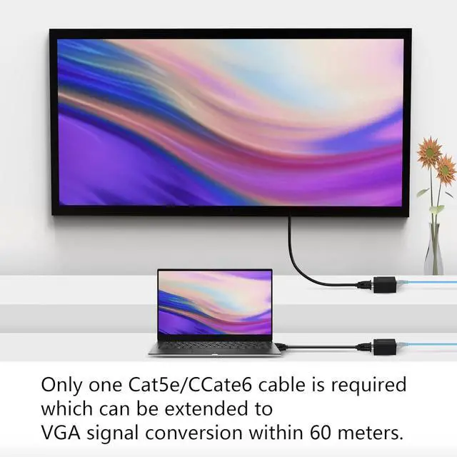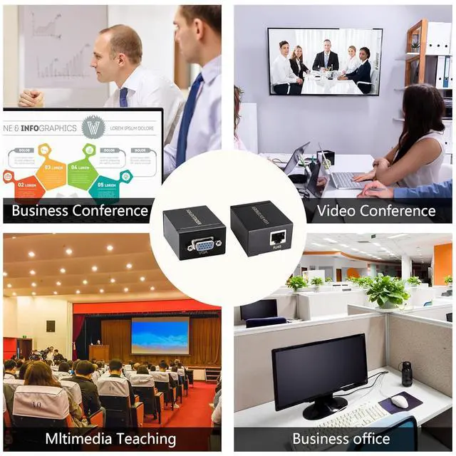 Plug and Play VGA extender adapter you only need a cat5e/cat6 pure copper cable to complete the rj45 convert VGA signal cable no need to drive just plug it in and use it and enjoy high-definition and stable signal transmission. Wide UseThis vga extender adapter is compatible with VGA computer VGA monitor projector or TV monitor host and other devices with VGA interface can be widely used in office conference room media video stage Demonstrations outdoor displays etc.