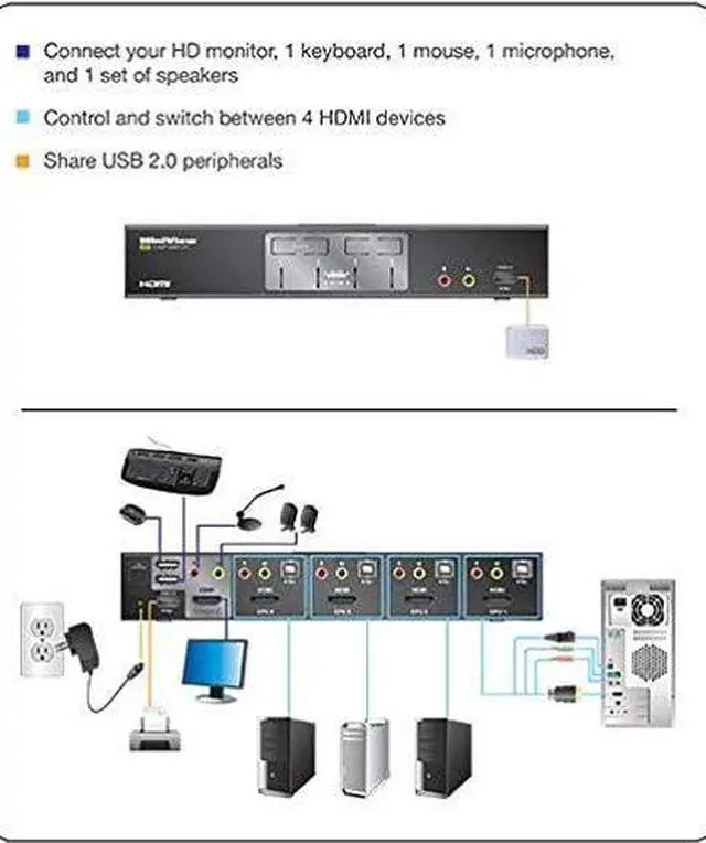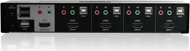 Share an HDTV or Display with HDMI connections, keyboard, mouse with digital surround sound between 4 of USB / HDMI computers and devices