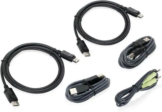 Send 4K Ultra-High Definition video from a DisplayPort-enabled desktop or laptop via an IOGEAR KVM Switch and connect two monitors, and a single keyboard, mouse and audio speaker set with the 6 Foot Dual View DisplayPort USB KVM Cable Kit with Audio. This Cable Kit is TAA compliant and ready to use with IOGEAR's Dual View DisplayPort Secure KVM Switches such as: 4-Port Dual View DisplayPort Secure KVM Switch GCS1424TAA3 Dual View DisplayPort USB KVM Cable Set with Audio High Resolution 3840 x 2160 @30Hz USB 2.0 Connectivity Analog 3.5mm Jacks for Speaker Support TAA Compliant REQUIREMENTS -Computers with DisplayPort and USB connections.